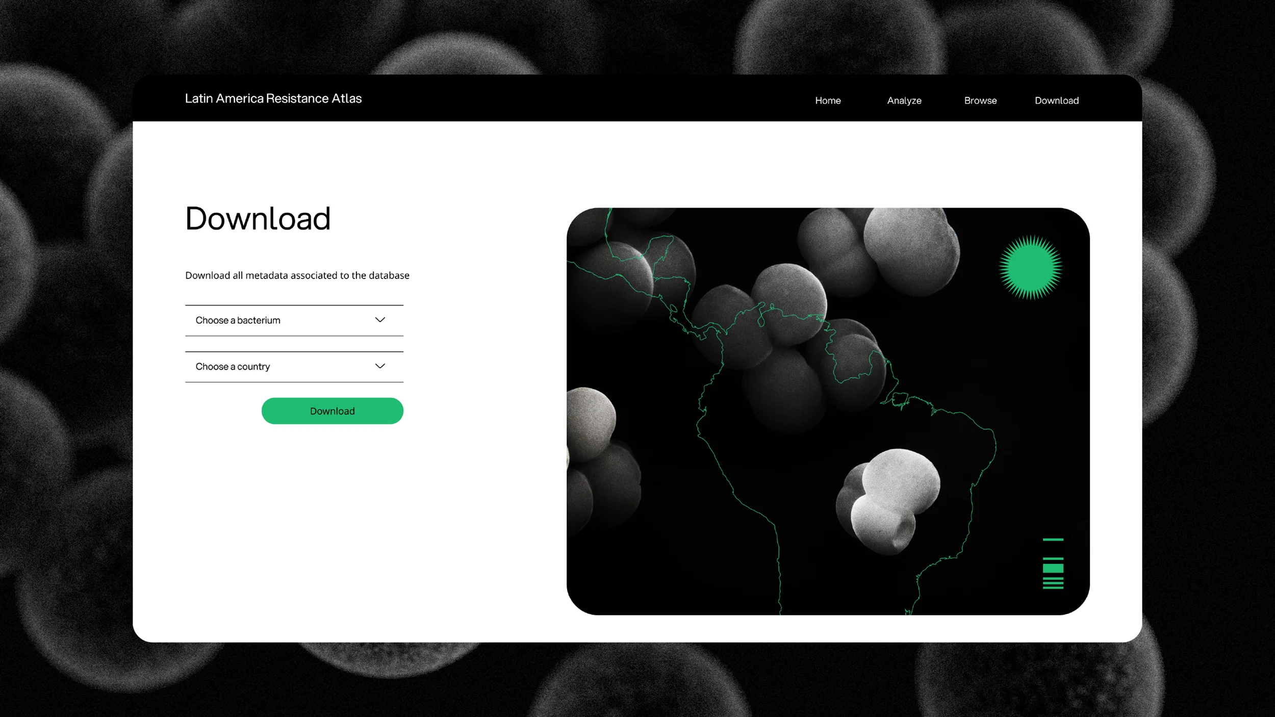 Latin America Resistance Atlas Proyecto de investigación impulsado por Amexcid y el Fondo de Cooperación México-Chile que presenta datos sobre resistencia bacteriana en América Latina. Se diseñó un sitio web multipágina para facilitar el acceso a la información mediante visualización de datos, gráficos y mapas interactivos.